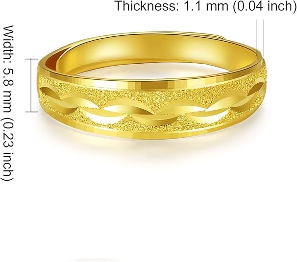 • 24K Gold Ring: Crafted from the highest quality 24K gold, Ring Gold weight: 3.5 - 6 g(0.123 - 0.212 oz); 24K gold is the purest form of gold, making it highly valuable and desirable. As a precious metal, gold holds its value over time. The purity of the gold ensures that the ring will maintain its value and a durable use experience.