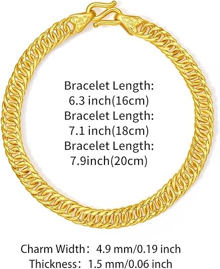 Real Gold Bracelets for Men: The double clasp design not only adds stability and security to the bracelet but also demonstrates attention to detail and exquisite craftsmanship. Each clasp loop is meticulously processed to ensure the durability and comfort of the mens gold bracelets. Length of the real gold bracelet is 6.3 inches, 7.1 inches or 7.9 inches, makes it comfortable and easy to put on or put off.
