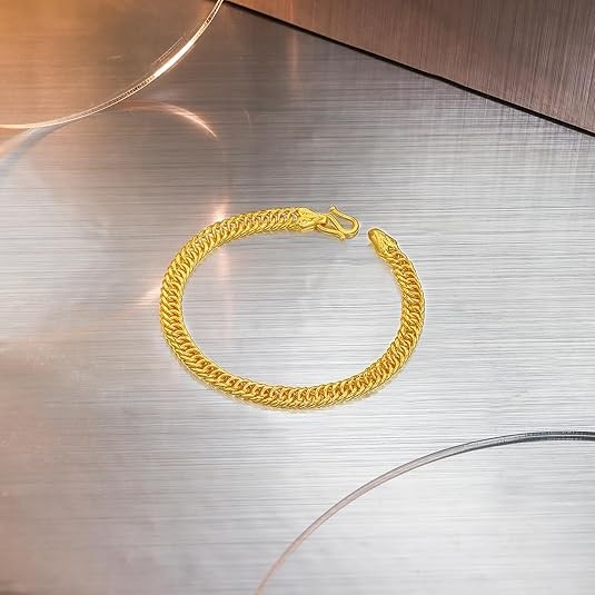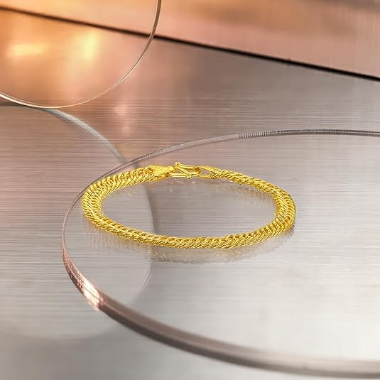 Design Concept: The design concept of this 24K Double Clasp gold bracelet women combines classic and modern elements, showcasing fashion, luxury, and elegance. The delicate gold bracelet is crafted with high-quality 24K gold as the primary material, radiating a brilliant golden glow that exudes a noble temperament and unique taste. The design inspiration for the 24k gold bracelets draws from traditional jewelry styles, showcasing a unique charm in its simple lines and smooth shapes.