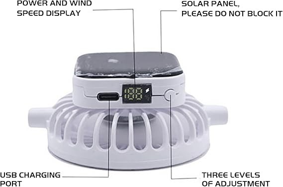 2 Power Supply Method: Solar powered/USB charging and 2 hours full, 2.5-3 hours at high speed, 3-4 hours at medium speed.If the fan in the sun solarization,the power will consume more quickly. Suitable Occasion: Suitable for outdoor sports such as golf, hiking, running, cycling, farming, fishing, shopping, beach play