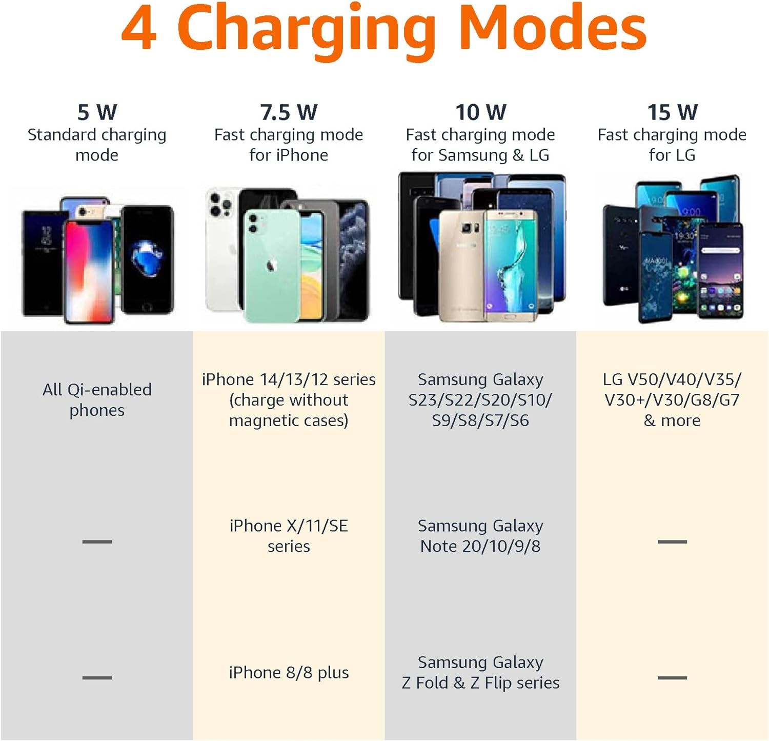 • High-Speed Dynamic Charging: Optimized chipset provides 15W charging on LG phones, 10W charging on Samsung, and 7.5W charging on iPhones; use a 30W PD 3.0 charger for 15W charging on LG phones, Quick Charger 3.0 / PD 3.0 adapter (9V/2A) for 10W charging Samsung phones, 7.5W charging for iPhones, or a standard charger (5V/2A) for 5W charging