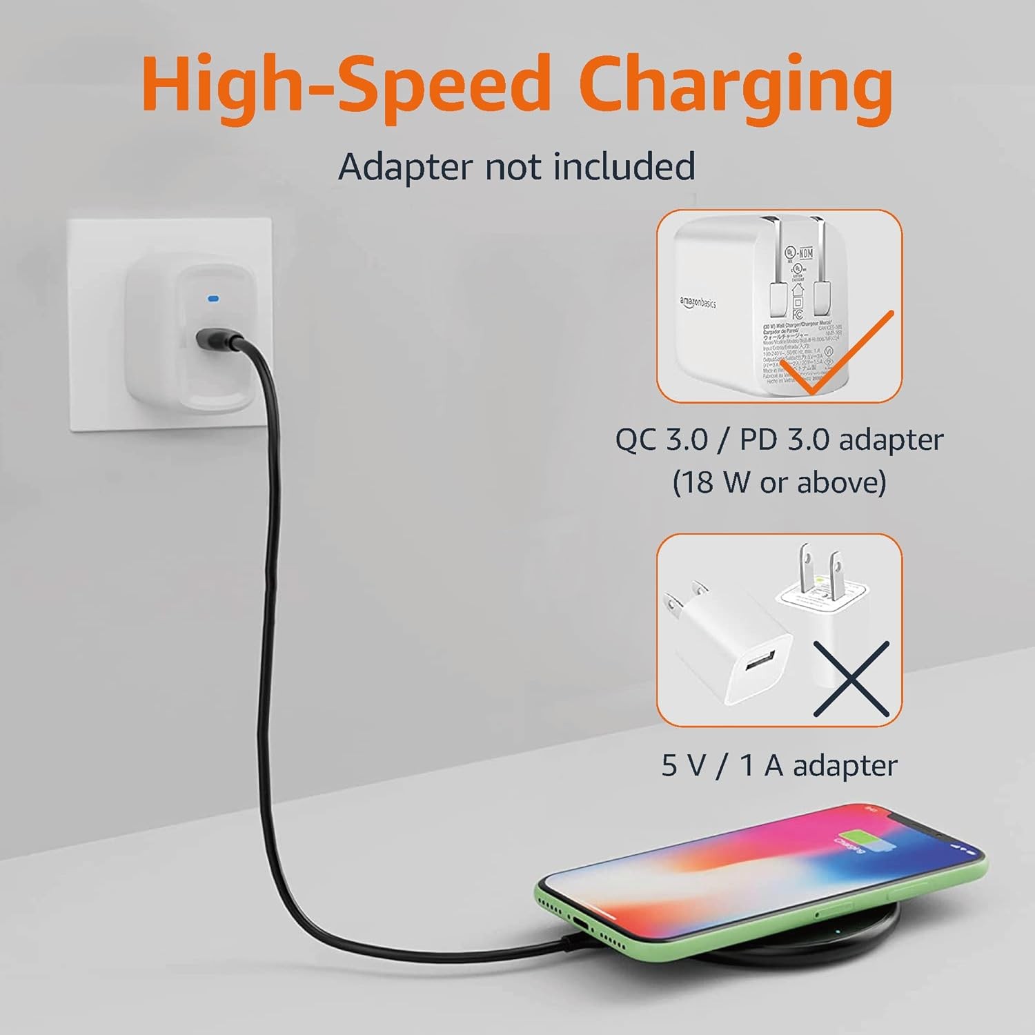 Amazon Basics 15W Qi Certified Wireless Charging Pad (iPhone 15/14/13/12/11/X, Samsung), with USB Cable (No AC Adapter), Black