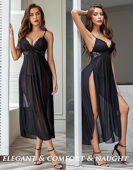 Material:This Long mesh nightdress is made of floral lace and elastic mesh, high quality fabric is smooth and soft,and breathable, provide you comfortable wearing experience.