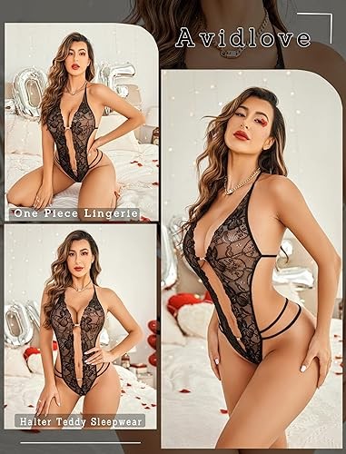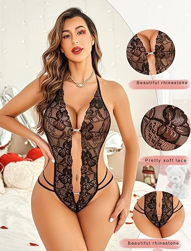 • Features: This lace teddy bodysuit features deep v halter neck, beautiful rhinestone in the front, backless design. Very charming and feminine.