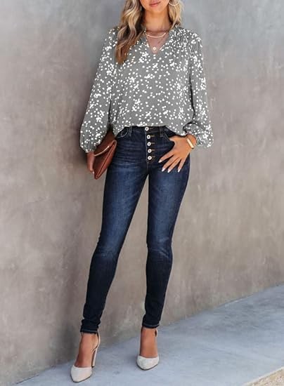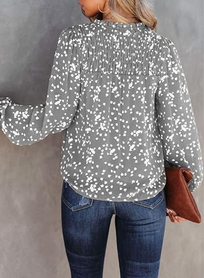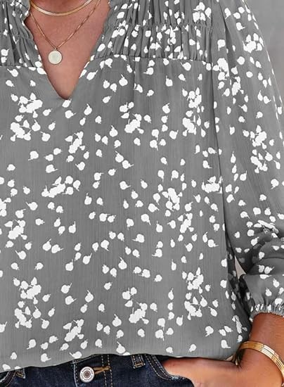 Features: Elegant Boho Shirt for Women, Sexy Casual V Neck Blouse, Relaxed Fit, Blouses for women fashion 2023, Womens Tops and Blouses, Long Sleeves with Elastic Cuffs, Cute Tops for Women Trendy, Alicia Flowy Print, Back Smocked, Business dressy work tops for women.