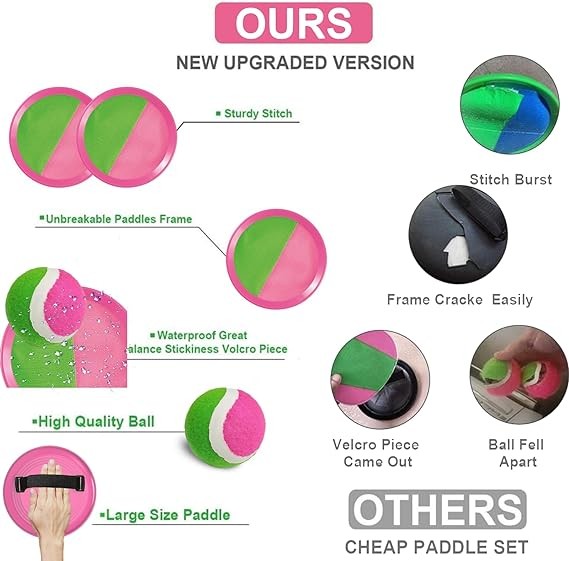 EPPO Velcro Ball and Catch Game Popular Toss Paddle Catch Ball Game Beach Toys Back Yard Pool Outdoor Throw Sticky Mitts Toys Set Age 3+ Years Old Boys Girls Kids Adults Family Birthday