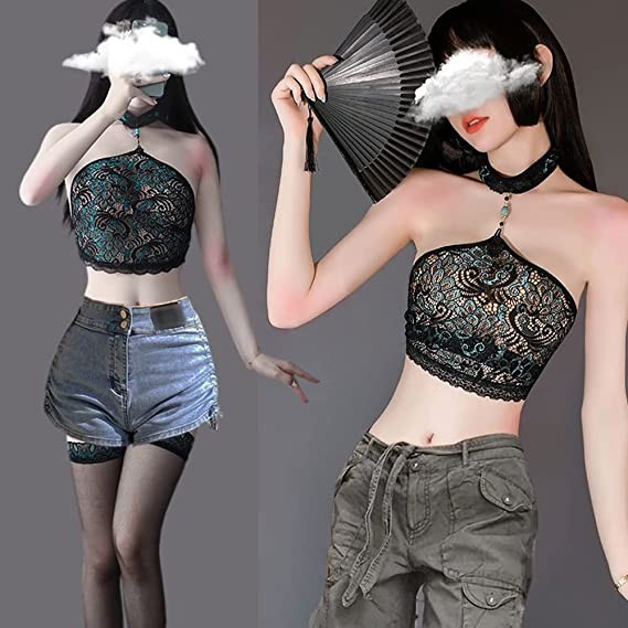 Erotic Underwear Women's Peacock Element Transparent Pajamas Lace Cheongsam Uniform Temptation Suit Underwear Set Sexy