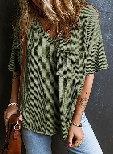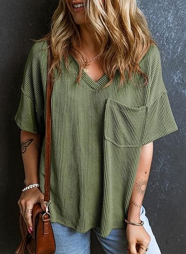 EVALESS WOMENS TOPS, BLOUSES & SHIRTS FOR WOMEN FASHION 2024! THE FASHION ATTITUDE OF THE ORDINARY WOMEN! New Design and High Quality Fabric: Unique and Solid Color, Short Sleeve Shirts, Sexy V Neck Blouses, Loose Casual, Lightweitht and Soft Fabric. Simple and Unique Tops: Suit for spring, Summer and early Fall. Matched well with jeans, casual pants, denim shorts and leggings. Suits for casual, vacation, beach, party, school, office, work, daily life wear. Multiple Choices: White, Black, Purple, Khaki, Green and Gray. Small, Mudiem, Large, X-Large and XX-Large size.Suitable for many periods of you. EVALESS invite you to experience comfort, to experience freedom, to experience novelty.