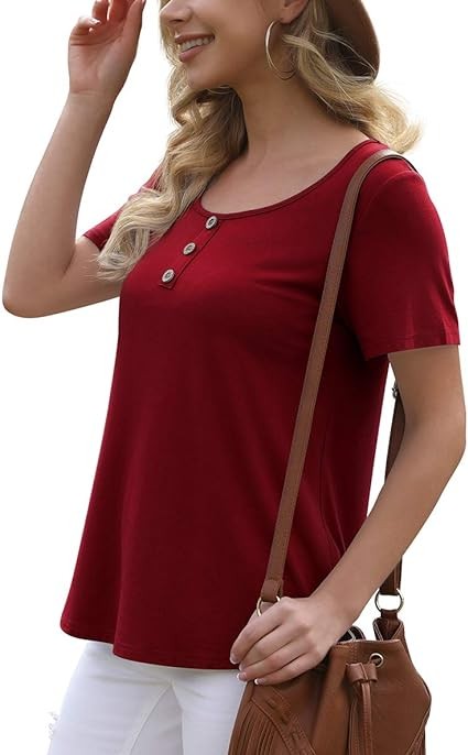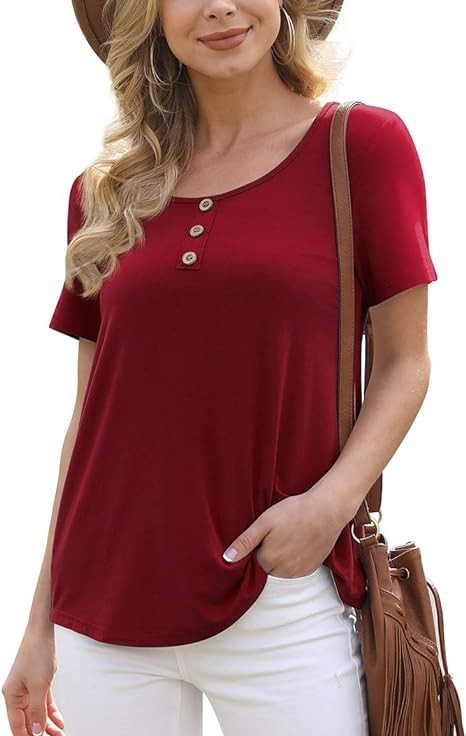Fashion-Simple Design: button front design(Button Closure) make you look cute, slimmer & fashion. super chic and fashionable.Casual relax fit style, Classic round neckline, perfect tunic tops for summer every day look.