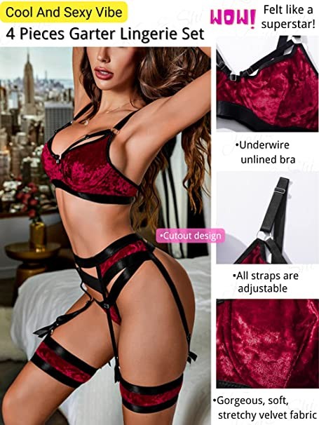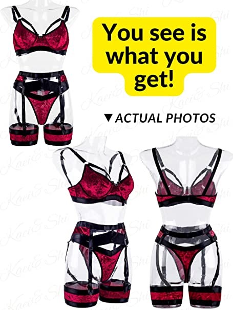 Garter Lingerie for Women,Sexy Lace Lingerie,Sheer Matching 4 Piece Lingerie Set