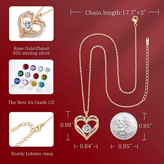 • ?【FOREVER LOVE HEART NECKLACE】The double-heart design symbolizes love for each other and everything that goes with it, in a fashionable way. The love heart birthstone necklaces for women with a gemstone pendant makes your relationship stronger and is the good choice to express your love for her on special day. And the meaning behind the design makes it a sentimental gift for that special someone. I LOVE YOU FOR ALWAYS AND FOREVER !