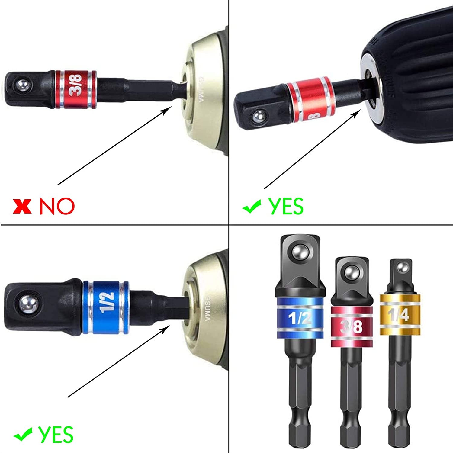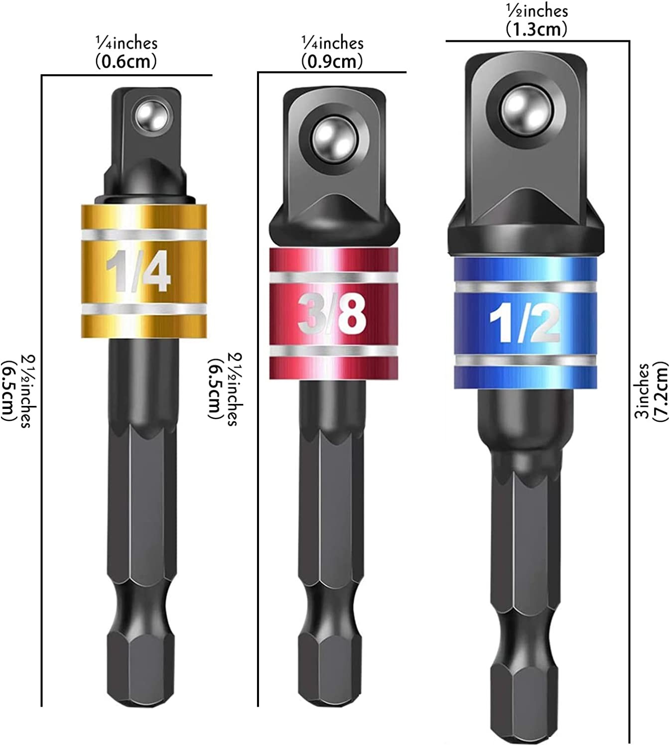 • The drill bit socket adapters are made of Stainless steel, nice durability, lightweight, sturdy, and this impact driver socket adapter is light and compact, convenient to carry outside and store.
