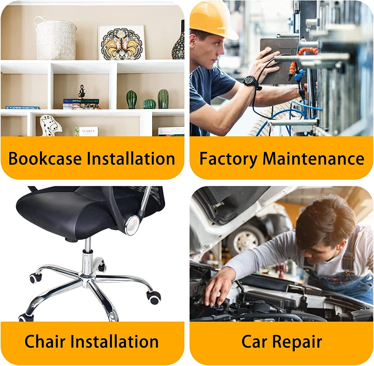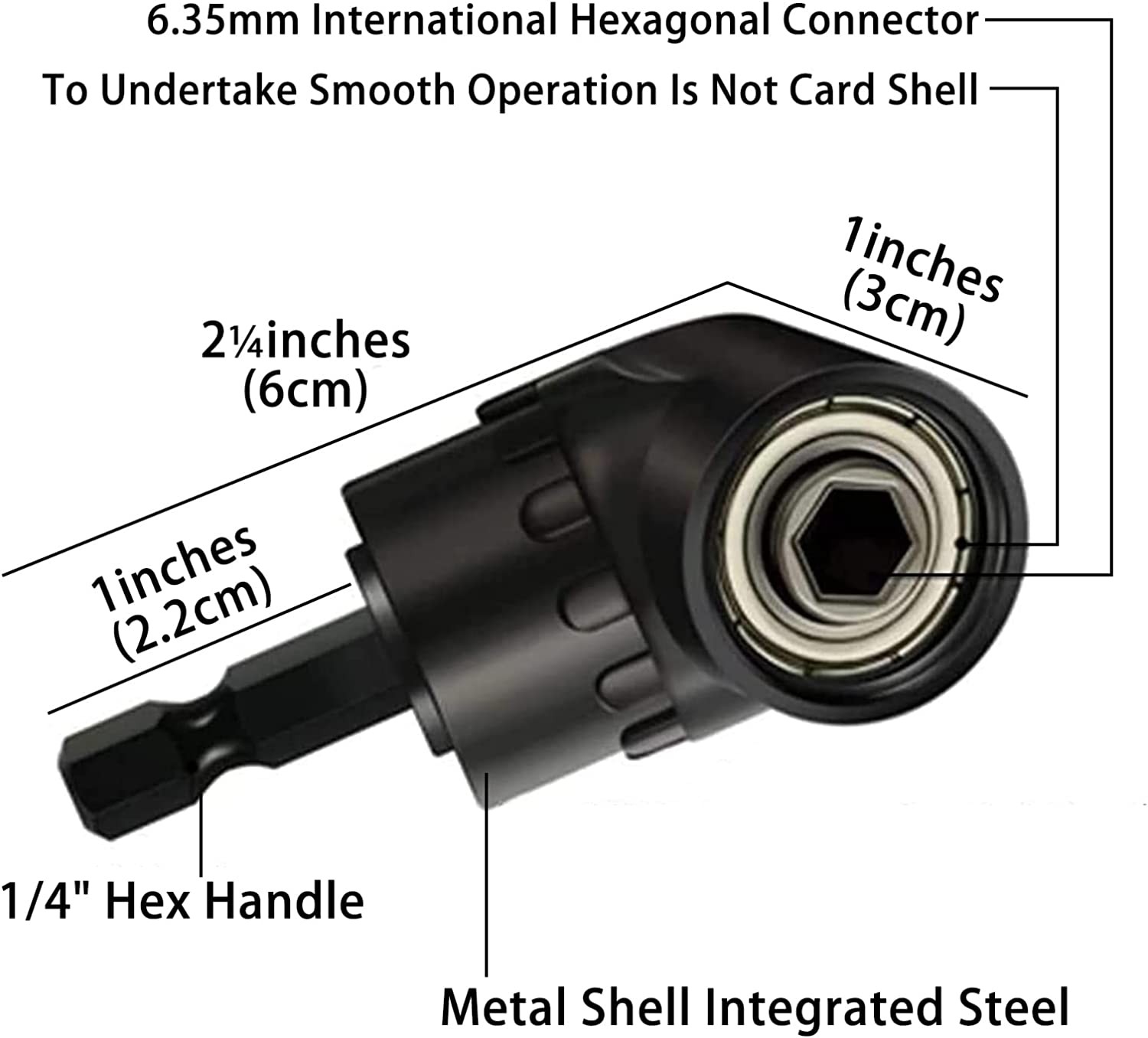 • 105°Right Angle Drill Driver can be accepts 1/4" standard hexagon shank bits, connected to the drill, rechargeable drill or manual wrench, extending their reach to inaccessible stenosis , twisting screws, nut and more.