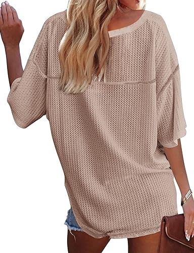 The oversized shirts made of soft waffle kint fabric, you will feel comfortable when wearing it. Loose hem can be tied into a knot, create stylish look. Easily paired with jeans, skinny leggings, shorts and high boots. Also, you can show your collarbone with a nice necklace.