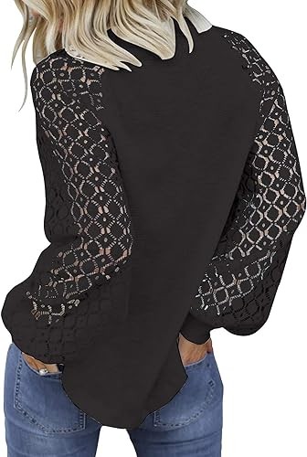• Casual Long Sleeve tops, crew neck, ballon sleeve with lace arms, knit top, solid, raglan shirt, loose fit t shirts