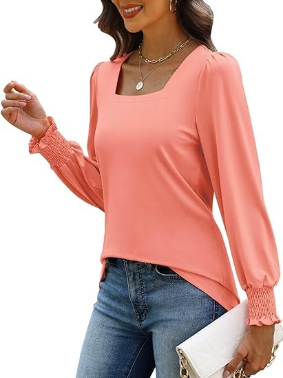 • Square Neckline: Flattering square neck design creates an open and feminine look, perfect for layering with necklaces or scarves