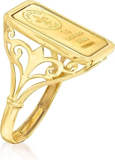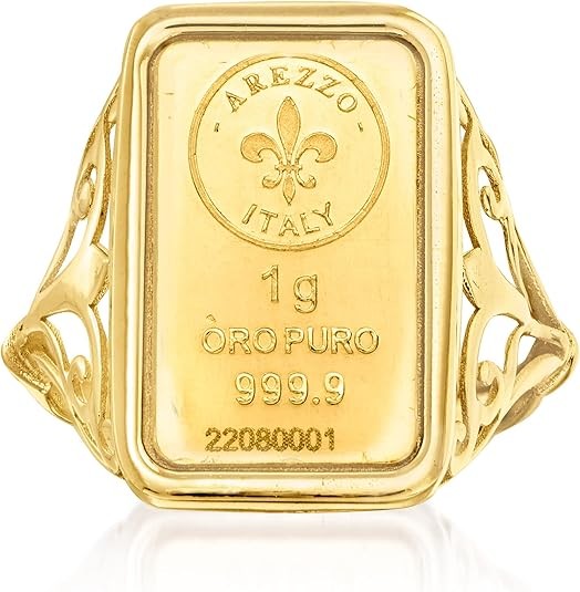 Ross-Simons Italian 24kt Yellow Gold Fleur-De-Lis 1-Gram Ingot Ring With 14kt Yellow Gold Band. Size 8