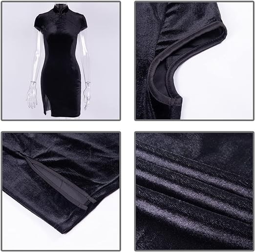 Material: Polyester, Side Slit, Short Sleeve,Slim Fit, Dress. Button design, velvet fabric is soft and comfortable. Cheongsam dresses are more fashionable.