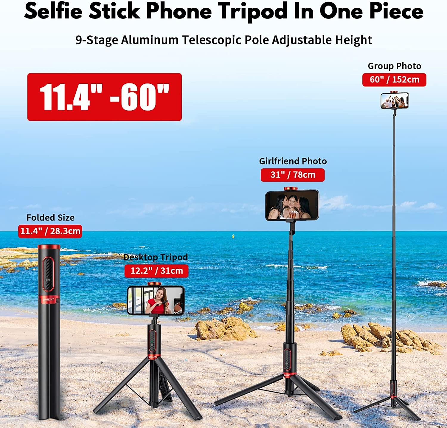 • [All In One Design] Selfie stick &phone tripod, all retract in one piece, This portable tripod is easy for storage and travel.