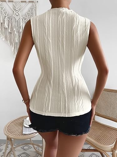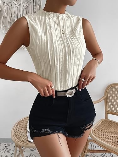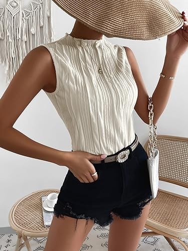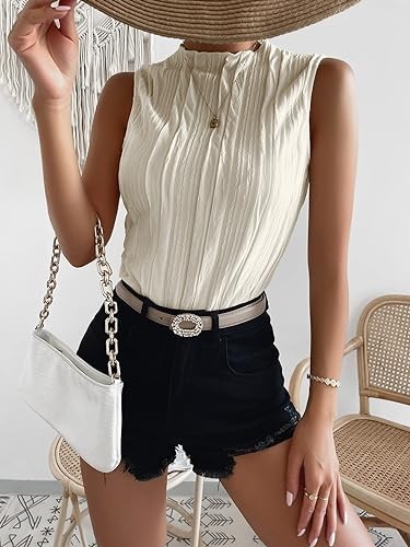 Verdusa Women's Sleeveless Mock Neck Textured Tank Top