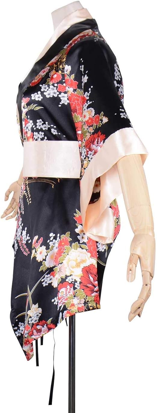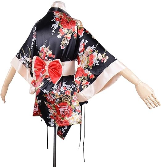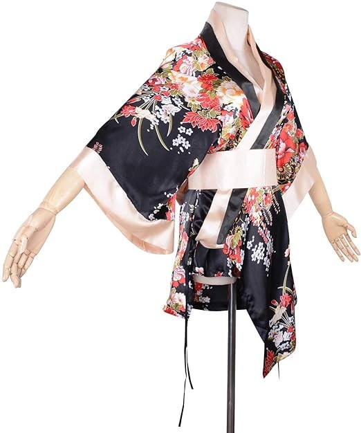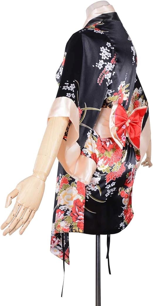 -Features: Gorgeous japanese kimono outfit mixes traditional japanese garb with sexy styling. This kimono dress features floral print design, wide obi belt with cute bowknot at the back, and loose long sleeve. The fabrics is soft, flowy and luxurious, with good drape, which can flatter your beautiful curves when clings to your skin. You will surely have a comfortable night with this sexy sleepwear.